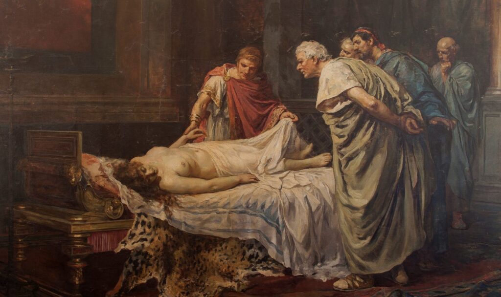 Imagine Nero’s shock upon discovering that his mother was still alive. He must have envisioned her storming into Rome, flanked by her loyal Praetorian Guard. Nero was in a frenzy. Thanks to the collapsible boat, his mother now knew he was attempting to kill her, which filled him with dread. After consulting with his trusted advisors Seneca and Burrus, he hired henchmen to go to her house and complete the task. When she realized the men were there to kill her, she is said to have shouted, “Strike here!” while pointing to her womb, which had borne the monster her son had become.